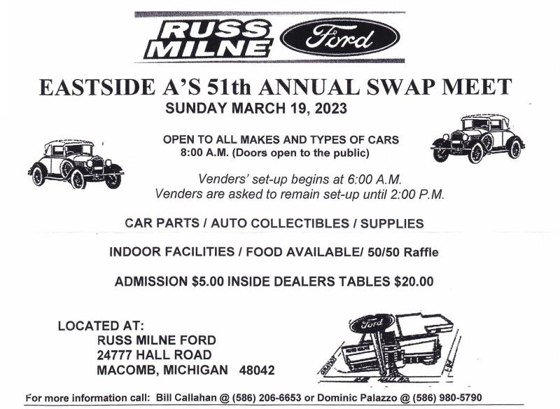 Re: Eastside A's 51st Annual Swap Meet, Sunday March 19th.