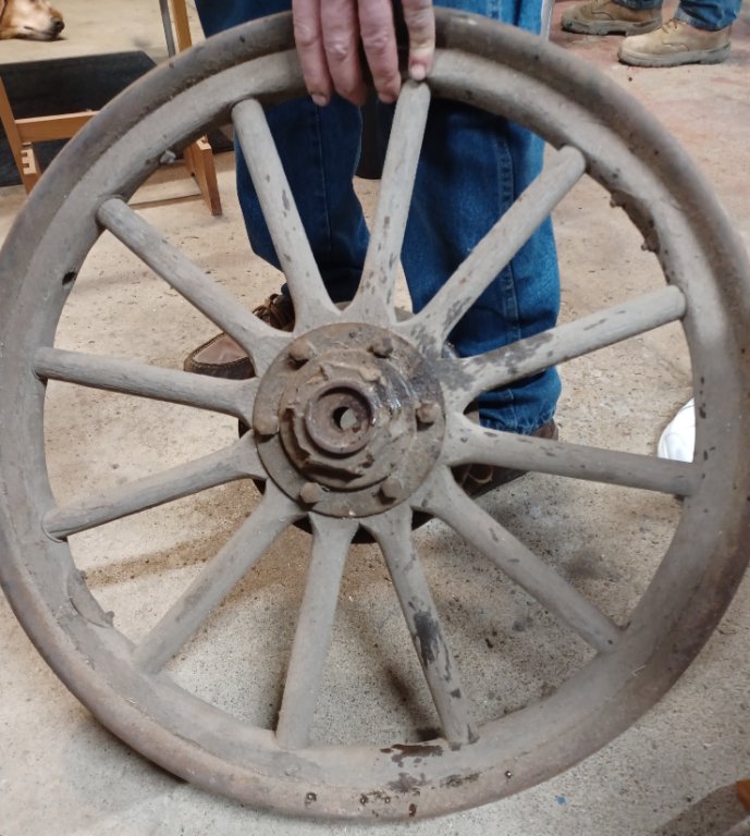 During our club's tech session last night, Joe Bell showed us a rear wheel with an interesting hub on it. As you can see it's got six "flats" on it that are also pretty well beat to crap. Apparently someone had trouble getting the wheel off the axle. The felloe clamps do indicate it's a Hayes wheel FWIW. Anyone seen one like it? Aftermarket hub maybe?