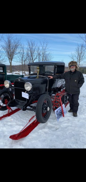 Todd, Even in Central Wisconsin our snow conditions are fickle at times. Our snowmobile trails don't even open very much anymore. If you want to build one, build it to stay as a sled unless you don't have the storage. They are nothing but toys. We take these to summer car shows at times too. If you build a sled with a TT rear end you won't want to go that slow taking the kit off for summer use. If you use a regular rear end you won't ever get out of low gear. The other thing is how much do you want invested in it and what donor car is appropriate. I just bought a 25 coupe very reasonable and had ideas of putting a kit on that, but the car is too nice to get limited use from it as a sled. Couldn't bring myself to do it. You need a cheap chassis that won't hurt your feelings to use. The A I built from scratch and looks nicer in the pics than it is. It would have taken a lot to restore it for a nice summer pickup.