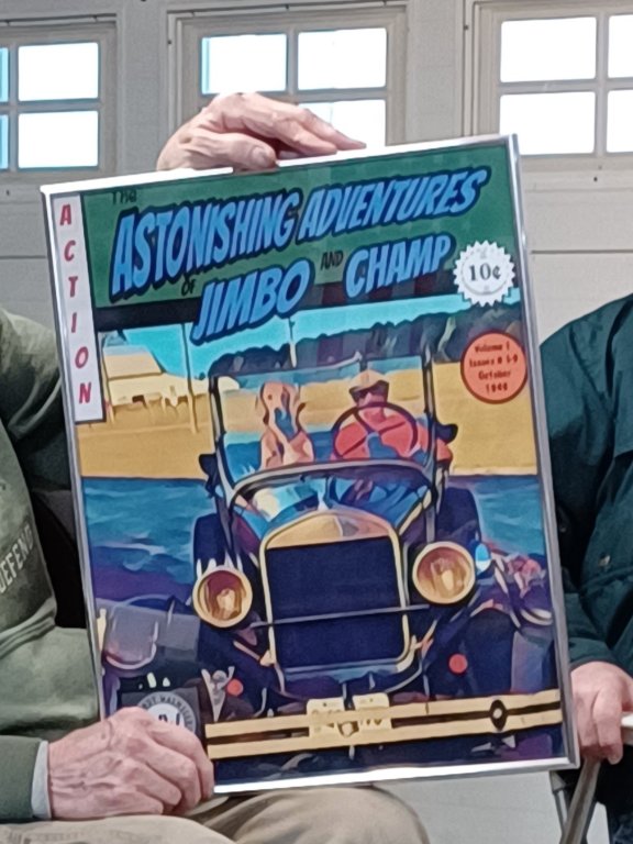 That is really fine !! A wonderful comic book cover makes me want to read all about the adventures of Jimbo and Champ ! Of all the companions a T driver may have, I'm sure his dog(s) appreciates it most of all !