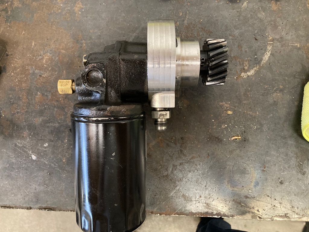 I do suggest seeking out an iron Melling pump rather than the lower precision aluminum alternatives. The iron pump I removed had very little noticeable wear after 10+ years. I am happy to make up a sketch of the adapter I removed if this helps