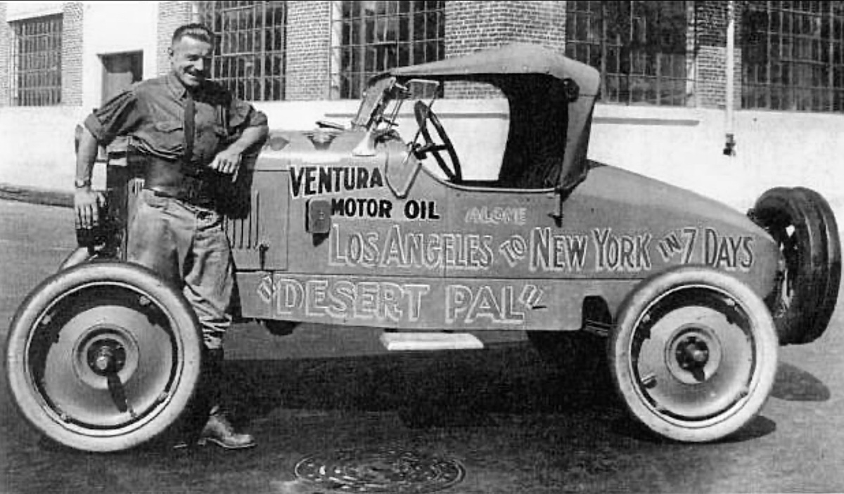 Any names associated with any of these vehicles? I knew Blacky Gold, who helped found the Southern California Timing Association, and he said he used to run in the desert where Edward's Air Force Base is now. He started with Model T's, so the first pic is REALLY interesting to me. He helped me do my Model T engine, and my Model A engine is probably the last one he ever worked on. At one time he was assisting the renowned Ken Petrick in his shop, overhauling Model T and Model A engines. He knew EVERYTHING about Model T's. He ACTUALLY KNEW all the big names in hot rodding, like Iskendarian and Edelbrock, and hung out at their garages when they were starting out in the business, in the 30's and 40's. He said when he was starting out, he would race a car until the engine failed, then he would take off any valuable speed parts, go buy another Model T for $5, and build that one up to replace the first one.