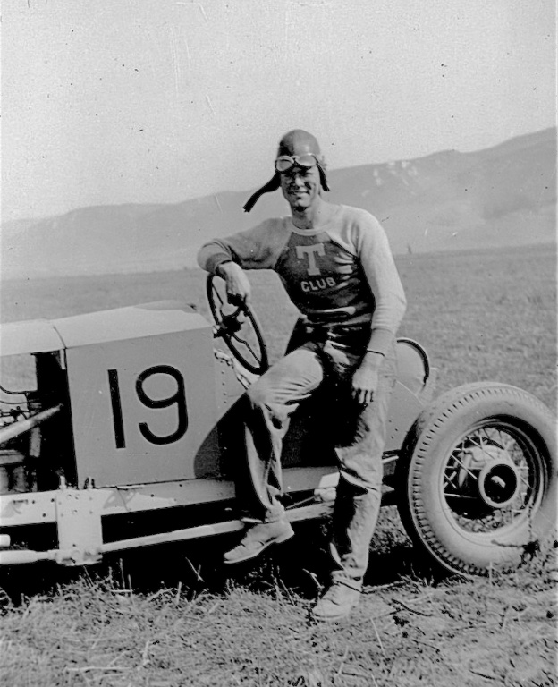 He was a very skilled machinist, and for a while worked at JPL in Burbank. He had retained some of the parts he worked on, that were never used on spacecraft, and showed them to me. They were spares or duplicates, but once the spacecraft was assembled, they were just regarded as scrap, since there was no further use for them. He was close friends with the Eastwood brothers, who also worked at JPL. He didn't like having his picture taken (superstitious) but he let me take a photo of him with my Model A engine as we were finishing it up, which I interpreted as a great compliment. He refused all offers of pay for his services, only allowing me to buy him lunch at a local Carl's Junior. I only saw one other picture of him, taken at the dry lake beds in the 1930's. He frequently drove his beautiful black 1932 Ford V-8 Coupe to my house when he was working on my Model A engine, which attracted a lot of neighborly attention. He was then nearing 100, and he was as sharp as ever. I have always been hoping to find a pic of him at the lake beds, doing the racing he loved so well.
