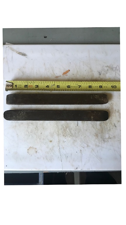 Quite used. Not ruined. In fair shape. Laughed out loud when the seller said they’re so small. I’m guessing about 12” or so long X maybe 3/4 or 7/8” wide. The ends are slightly curved. Of course no markings.