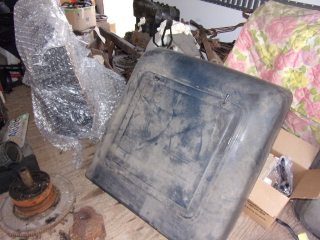 I have my trailer loaded! Demountable wheels and rims, Set of heavy spoke wheels from Worthington or Toro tractor (fits Ford '28-'48), front axles and wishbones, steering columns, headlights ('15-up), other prewar headlights, firewalls and grille shells (incl. high), model A grille shells, fenders, steering columns and wheels, brass radiator, windshields, fan assys, coil boxes, A and T turned cranks, carbide generator (1914 -needs work), some A and T fenders, rear axle shaft, '40-'42 Ford hydraulic brakes, railroad jack, and more!