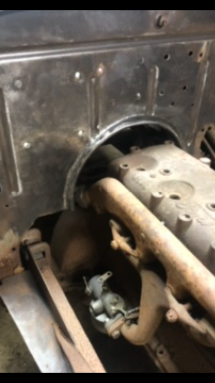 Working on my speedster. I was just about to drill 3 holes for the 22-25 steering column bracket I had clamped to the dash for the T steering column that I already had modified to fit when I thought, I wonder if I could make the Overland column work? So I tried it, then I took it apart, shortened and fitted it. I still have to finish the bottom parts of the spark and gas rods that I extended and make a bracket for the spark rod at the bottom. I welded 1/2 of a Model A brake drum to the firewall so it would look neater. I need to figure out the upper floorboards next.