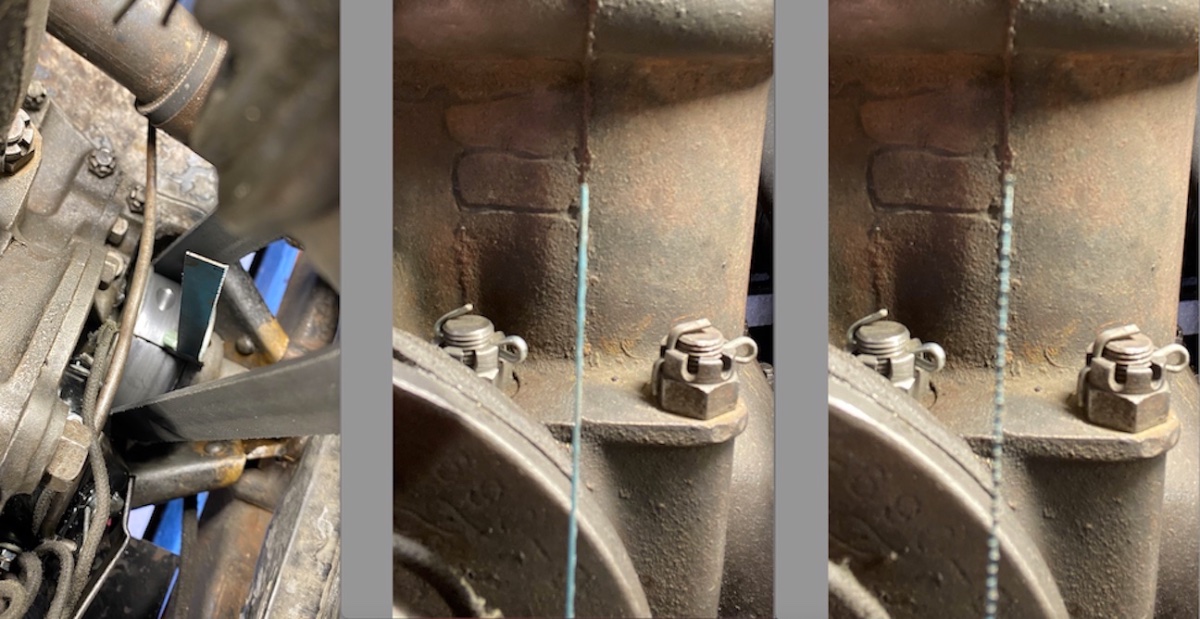 Since my T is a RHD Canadian and the timer rod goes to the bottom of the timer instead of the top, the usual guides don't easily work. And I also installed a split aluminum pulley on the crank, which can be put on in two positions 180 degrees apart by the way.