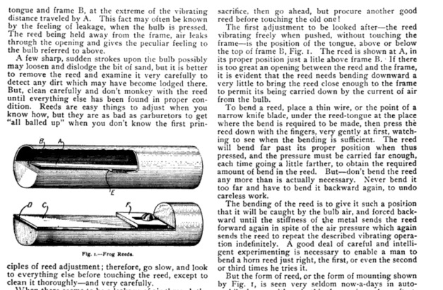 Thanks for that article Dan. What's most obvious is the reed illustrated in the 1913 article is quite different from the reeds I've seen, which appear to be half of the reed in the article. It's all fascinating ! More study is indicated !!