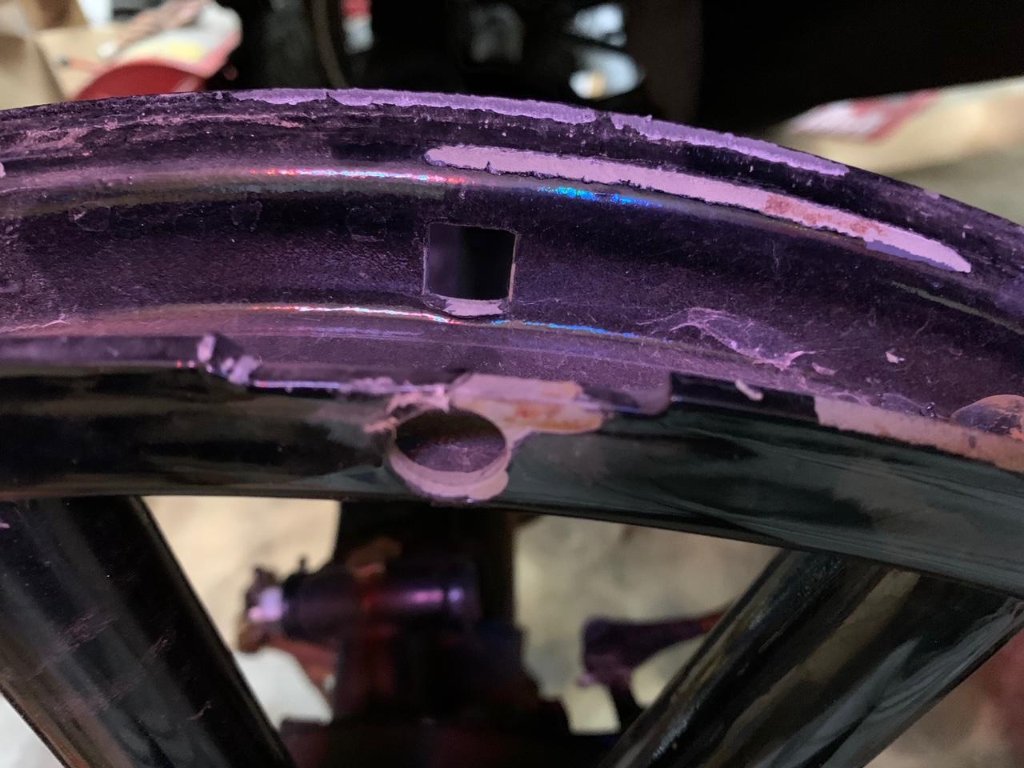 I reinstalled an old rim on that rear wheel and it fits fine and has less run out than the new rims I am now sure that the felloe is not bent. I have an old picture that you can clearly see that the original rim seats up fine to that felloe. Whereas the new ones do not. I am to the point that I am thinking about going back to the original rims.