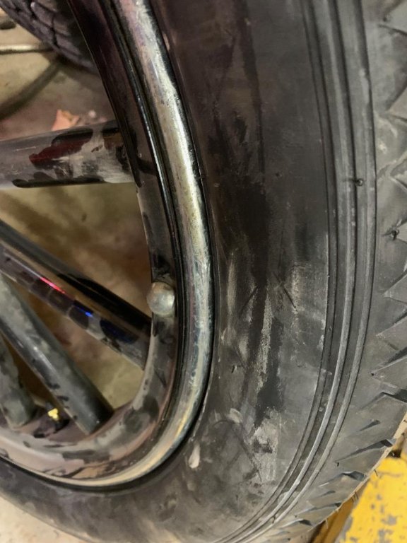 I mounted my tires first, without test fitting the rims. I now know that I should have done that. I have 2 rims hat will not go on. I tried them on 3 different felloes so far. The first one, that I drove on with a dead blow hammer runs very true. The second one, that I struggled with has more wobble than I like, but I think that felloe could be bent. The 3rd one wobbles also. Maybe I need to reinstall the old ones and check the run out too. I never did that before taking them off. I have not tried the fourth wheel yet, as I have it parked where I cannot get to it. My time is very limited, due to my working 7 days a week.