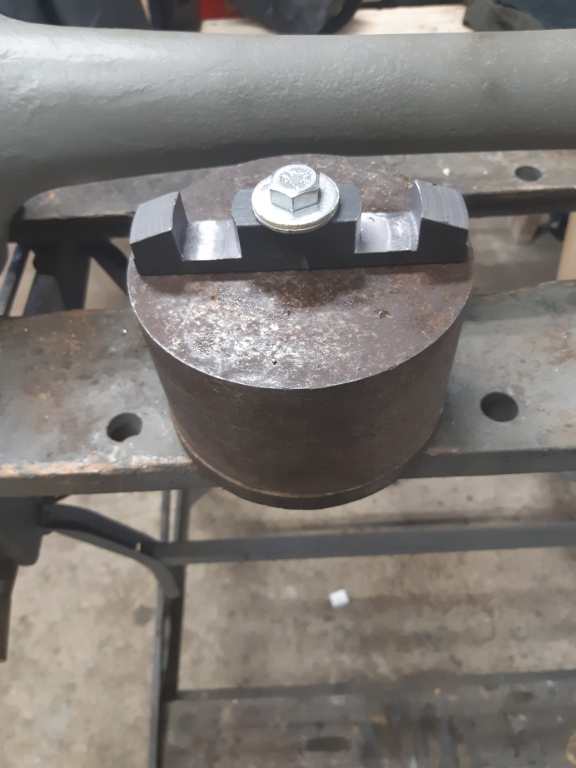 Bolts can be torqued to produce more consistent clamping force, but don’t spread to hold the parts in alignment unless they are fitted bolts. Rivets work well for alignment as the spread out to fill the hole and hold the parts in alignment, but they don’t produce reliable/repeatable clamping force. So, I did the hybrid. Two rivets to prevent movement of the parts, and stove bolts to hold them tightly together. I did make an anvil jig to help with the riveting which made it go surprisingly easy in the end, but the two main parts could not be pre-clamped together so relying on the hammered rivet only for clamping force didn’t satisfy me. A picture of that jig is also attached for information.
