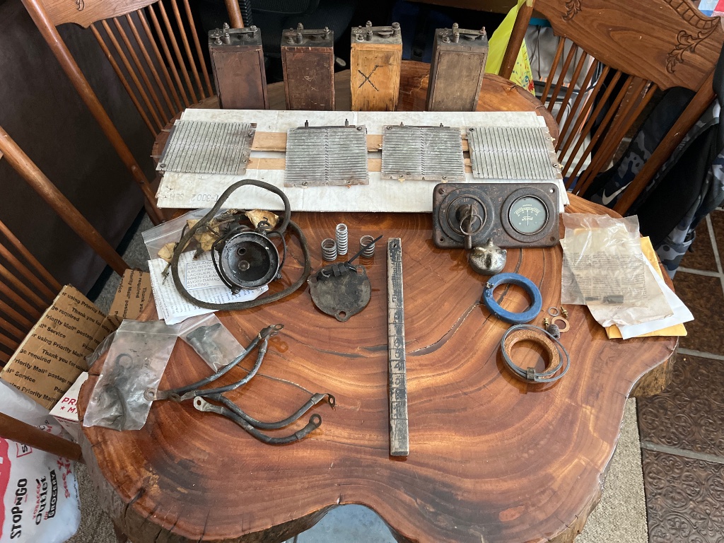hello my name is mark. just got it home , came with xtra carbs, coils and misc partrs many questions to come i'm sure what do i have here as far as carbs go , i see coil boxes and i'm guessing resistor plates, new timer is installed i haven't heard it run but the person sail it started for a minute yesterday, looks like possible Valve springs in the mix water outlet with an impeller , water pump kit on the motor , and nos generator gear driven on thr right side of motor , as it sits in my garage it owes me $2000.00. i traded it for a Bradley GT i had i think i did ok ... it's 100 years old lol