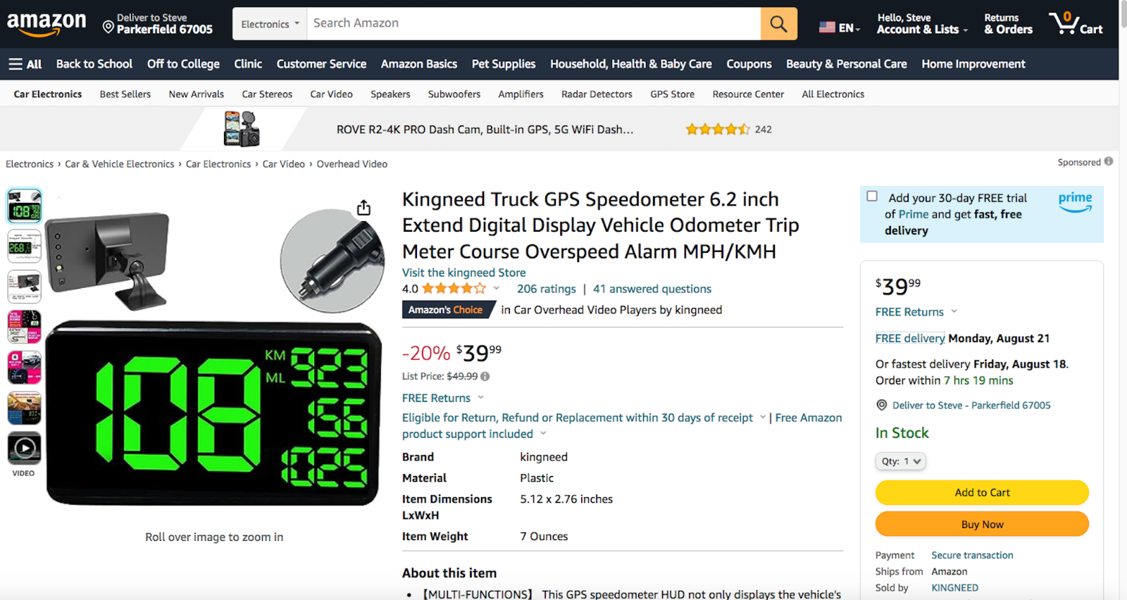 Just so there is no confusion - The Kingneed truck "speedometer GPS" has no map functions. Its just an odometer using satellite references to calculate speed & distance traveled etc