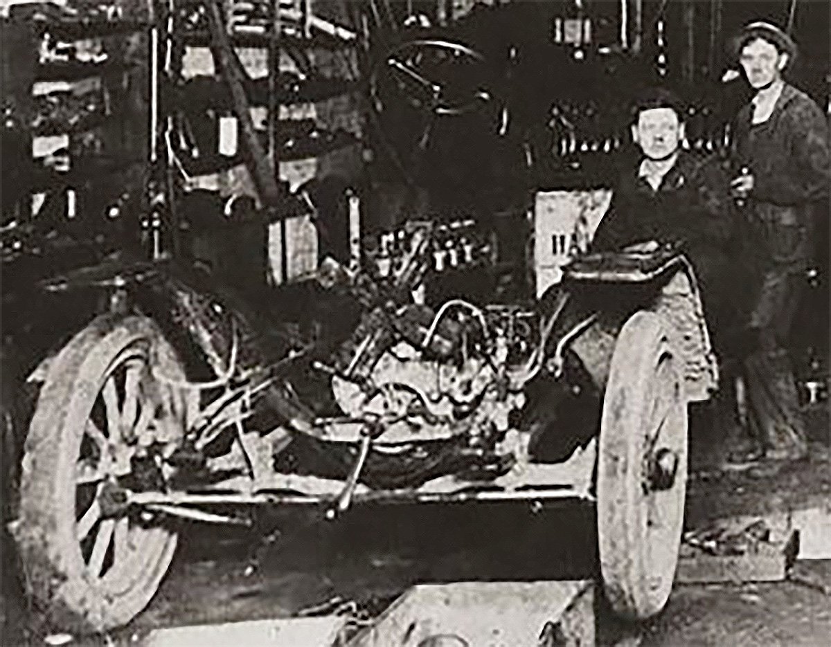 T see a 1914 in the license plate too but fuzzy and the photo may be then and not the car. I see brass support rods also.