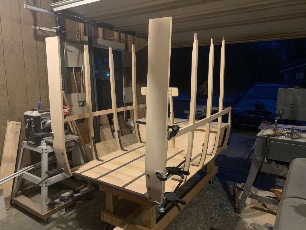 Got the “C” sections done. My daughter wanted to lend “dusty ol dad” a hand along with a neighborhood boy who was intrigued with what I was building in the garage. I asked his parents if he could come over for a little bit if he wanted to help. He was pretty excited to help do some sanding.