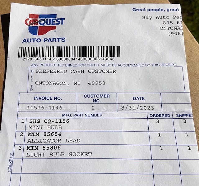 Thanx to the knowledge on this forum, I was able to quickly troubleshoot a mag issue today. Yesterday, after finish assembly of the Time Machine, I took it for a shakedown cruise of about 15 miles. After a normal shift into Hi the engine quit and I coasted to a stop. I switched to BAT and got a nice “free start”. Switching to MAG the engine quit again. I stewed half the night fretting what it could be and the logical assessment steps. This morning I scoured the forum for Mag issues and stumbled onto the thread about the bulb socket and leads to test the mag. I purchased the necessary components at CarQuest and made the tester. It took all of about 1 minute to remove the top floorboard and clip the tester on. No light meant bad mag or mag post. I had a spare that I installed and got a nice bright light at hi idle. Boy was I happy that the mag was still good. I was dreading what I thought might be half a day of testing switch, wiring, etc. For anyone interested in building this simple tester, here are the CarQuest numbers. Total was just over $12 including (3) 1156 bulbs.
