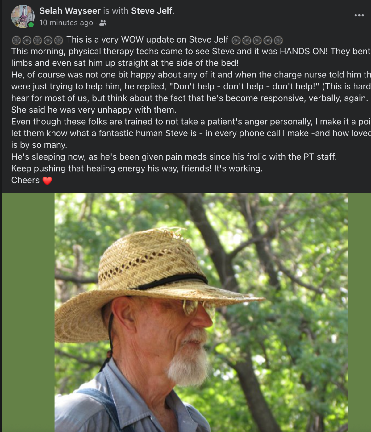 I hope so very much that Steve can recover well with his independent spirit and desire to live his life to the fullest intact!