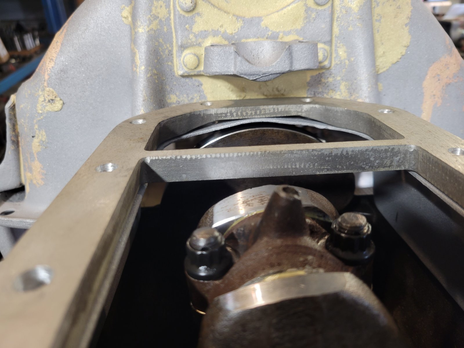 I tapped the 2 rear holes in the pan spacer and trimmed a small piece out of the pan on my last motor. A bit of silicone seals the spacer to the pan, and the inspection plate doesn’t know the difference. Lots of clearance now!