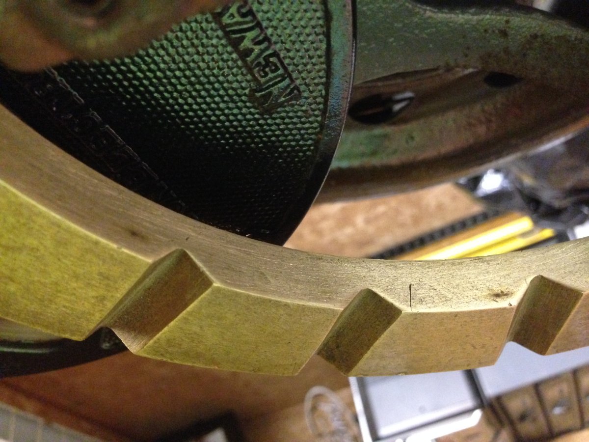 First off, I'm a newbie to using an HCCT and fully understand that I understand very little. I have a professional rebuild my coils, but I happened into the opportunity to buy this HCCT and like to fiddle with it. (Read as please refrain from suggestions to have a professional do my coils or to try xyz type of tester). My HCCT is a Service Station Equipment Company unit. I was supposedly rebuilt quite some time ago. I was putting 8-10 coils across it this evening, basically experimenting without actually doing any coil adjustments. Before I started, I thoroughly cleaned the ID of the brass ring and the pointer and set the point gap to a smidgen under 1/4". In testing the coils, it seemed like, generally speaking, every other spark on the ring tended to be stronger. In other words, every other spark location on the ring tended to look weaker when it did jump, didn't jump as often, and for some coils didn't seem to want to jump at all. For some coils, all 16 locations seemed to work fine, but for coils that weren't perfect, the "good" and "bad locations were always the same. After finishing, I noticed that my observations seemed to be confirmed, as every other location had a small brown spot where the spark jumped. The locations with the brown spot are the "strong, easy spark" locations. To be clear, it's not the brown spot that I see as the problem or that some coils didn't behave right, it's the "every other location" aspect that seems wrong/odd to me. What's going on? Field coil or magnets? Why is it such a clear pattern?