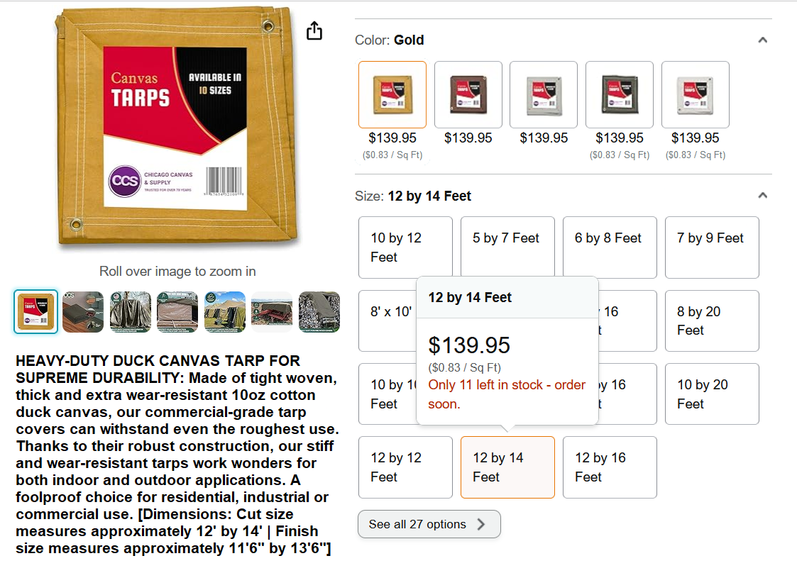 Duck Canvas appears to be very inexpensive material - having it made to order may cost. Some show a price about $1,000