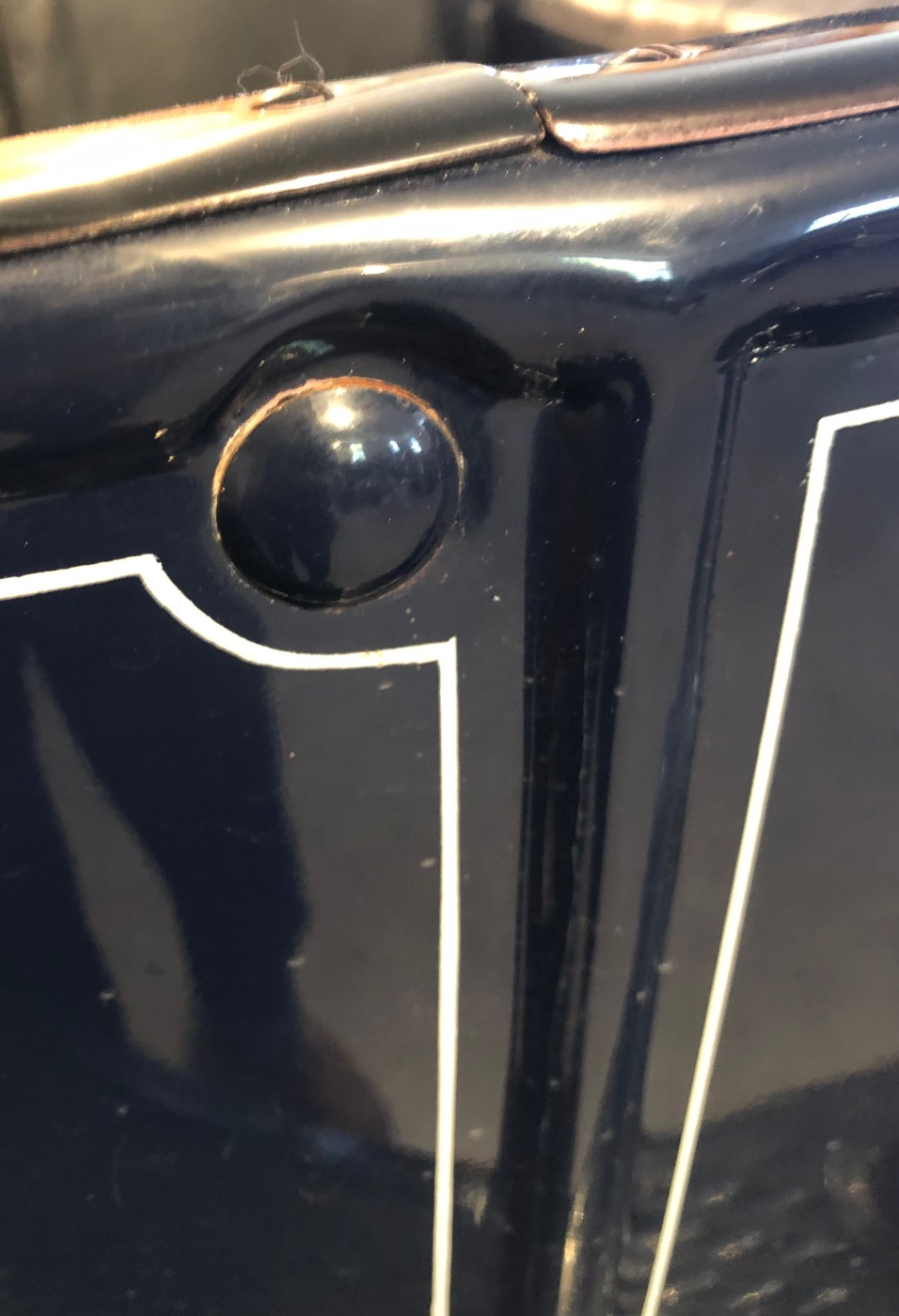 Please note the pinstripe is incorrect - it is much too broad, and should run horizontally at the belt line low enough to clear the bolt head.