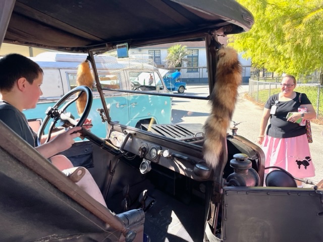Our club took a few cars to a local teen center and told about early transportation and birth of the Model T. They loved sitting in the cars. Below is my 21 Touring full of kids and of course honking the horns.