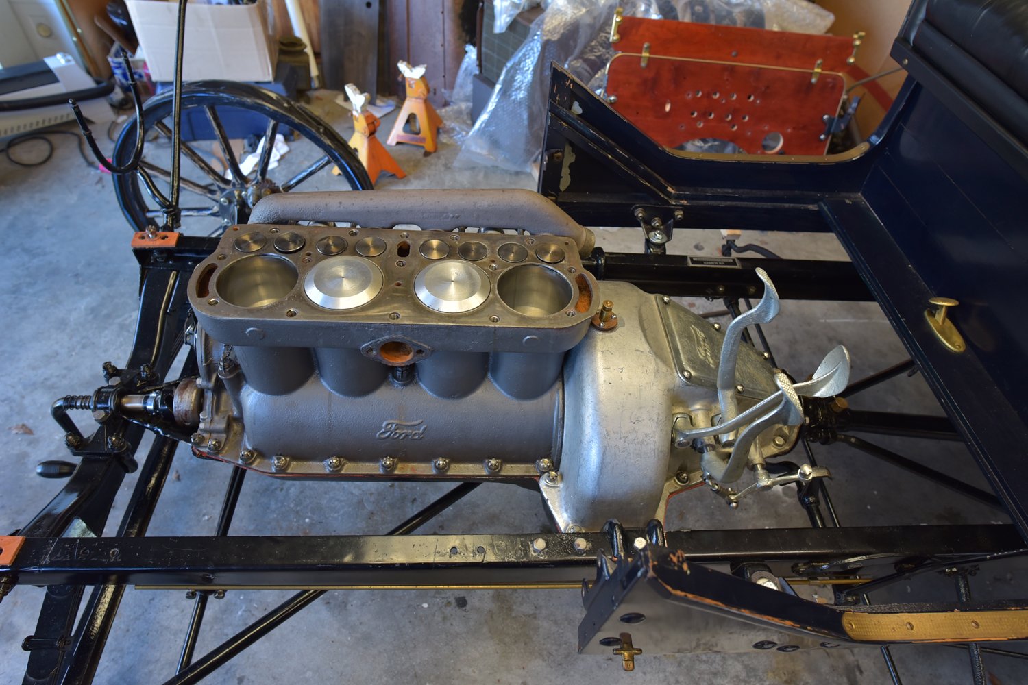 Along with my friend Brian, we pulled the engine from my '25 Touring for a rebuild. It's been in there since about 1975. It's been getting very tired. We'll see just how tired very soon, when it comes apart. I've been putting it off for a long time. It's a car that, for sentimental reasons, I hate to touch, (although I do drive it a lot). It's kind of a time capsule to me. My dad bought it in 1940. He drove it to work on his 1st day at Ford, and on his retirement day in 1980. I drove it in his funeral procession in 2010. He used it in his wedding in 1950. I used it in mine in 2017. As I kid, I gauged my growth every Spring by how much more of the hood, and eventually the headlamps, I could see from my front seat spot, next to dad. As an adult, I gauge my "growth" by how much closer my stomach gets to the steering wheel every Spring