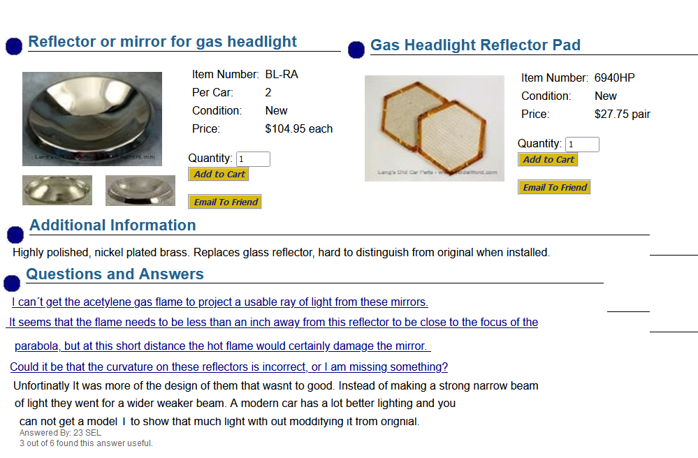 Try Langs for repros in polished nickle. The design of the original lamps & reflectors is quite different then what is expected of them. The reflection of the objects in the mirror of this photo is what the headlight would illuminate. Its not a focused beam as with the later T headlights with fluted lens. In fact it is the lens that really focuses the light down the road. It is also critical to have the source of light be a pin point at the concave mirror's focal point - is there a way to make such an adjustment? Some afte market lens were made available as an attempt to reduce glare and focus the light --Rich P. Bingham wrote: ↑Thu Nov 09, 2023 1:54 pmI too, would like to know if mirrored glass reflectors are available anywhere. I have a pair but they are a wee bit too big for my lamps. Also, any information on a source for re-silvering the mirrors would be useful.