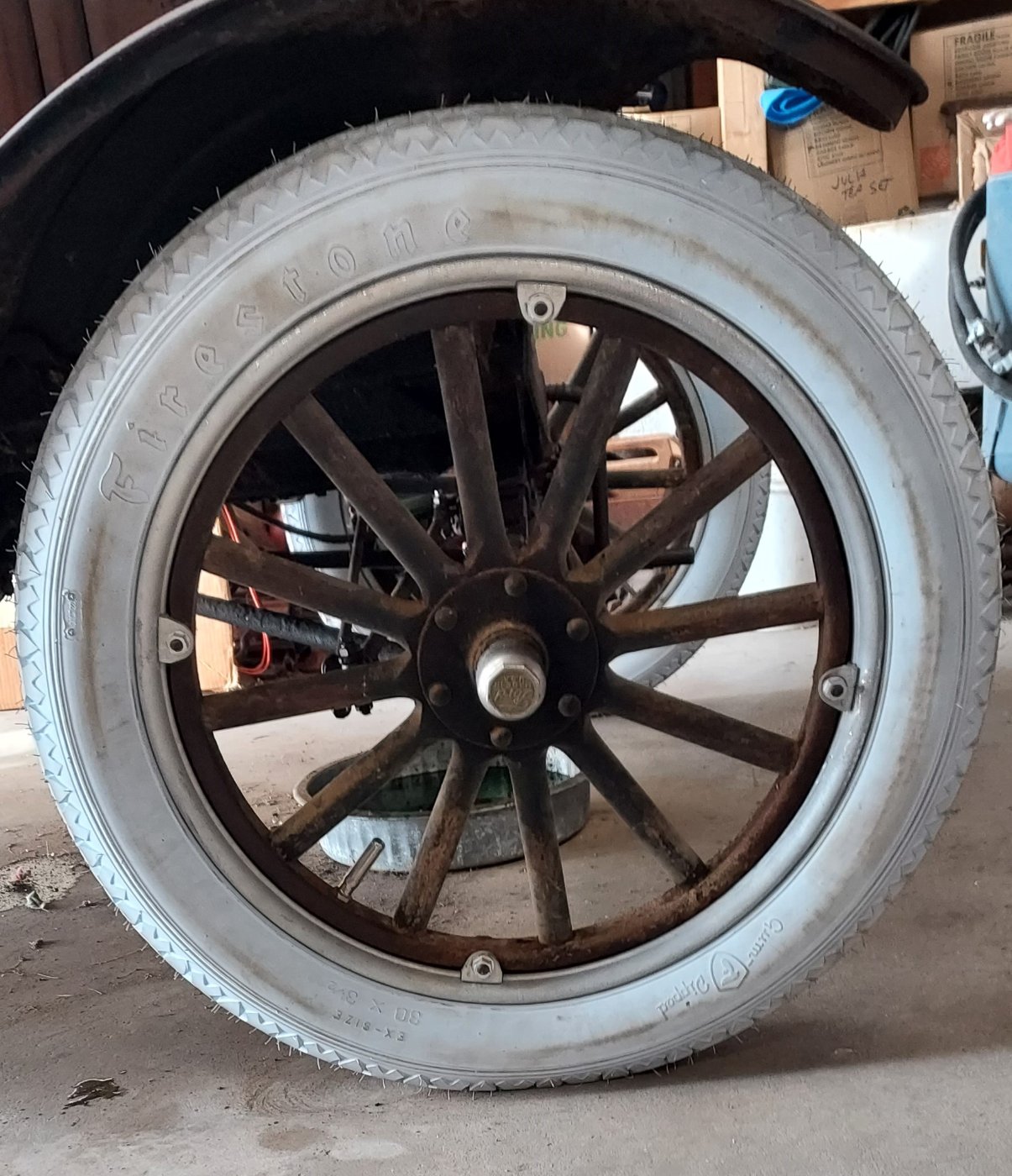 Nice day for a photo op. My freshly shod 1924 Runabout.
