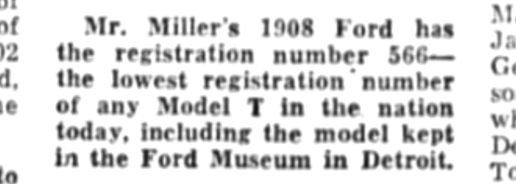 It's interesting that it says it has the "lowest registration number of any Model T in the nation". I assume that refers to the serial number, however, the number is not provided in the caption.