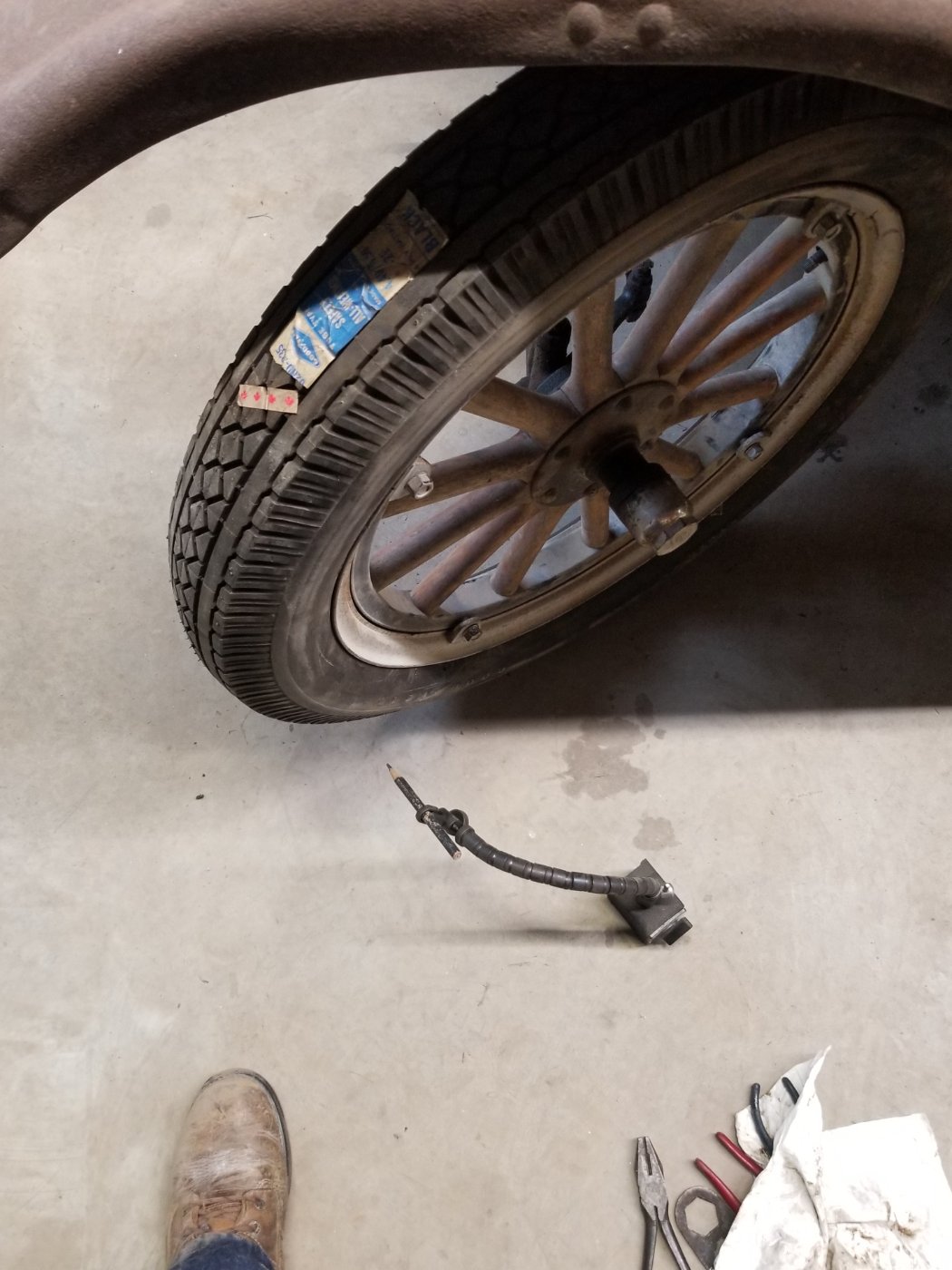 I tried for 3 hrs yesterday to mount one of my new Goodyear tires on the rim. No go! Two rim sreaders, two wood blocks cut to fit the rim and a jack, still no go! Pretty much destroyed the rim. Now these tires are early 90's vintage but very soft. After defeat, I went in the house.
