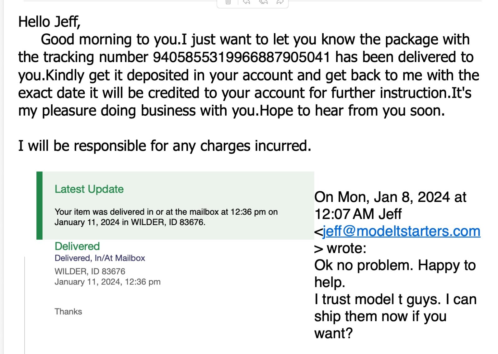 This is a bit OT, but it's related to Model T's and you'll enjoy the story. And it might help you avoid scams when you sell your T parts.