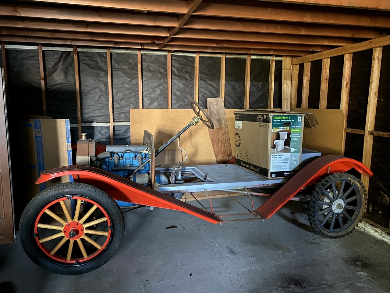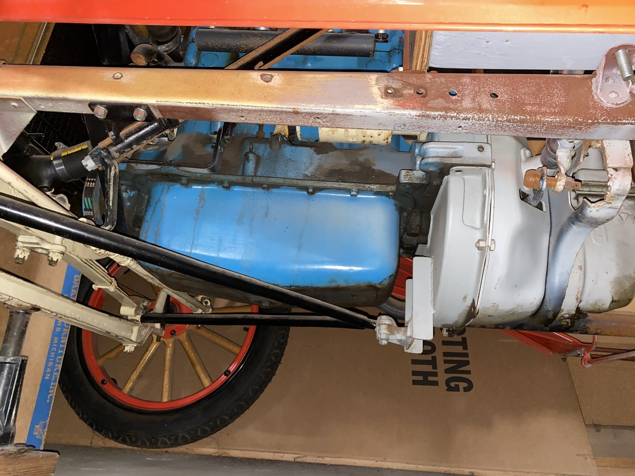 If you have them, can you post a photo of how the front of the engine was mounted and a shot of the other side of the engine? I have seen posts about transplanting the Chevrolet block onto the T pan and using the T hogs head, flywheel, transmission etc. Neat setup!