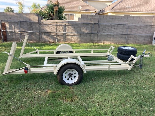 NOTE: In Craig's photo, there are 2 spare tires. As wise choice for a single axle trailer but a tad bit of overkill as the possibilities of BOTH tires going flat is not high, but still a good idea. My son taught me: IF you have a double axle trailer, ALWAYS carry 2 spares (at least). The reason: IF you run over something that will flatten a tire, you have a great potential for flattening BOTH tires on that side.