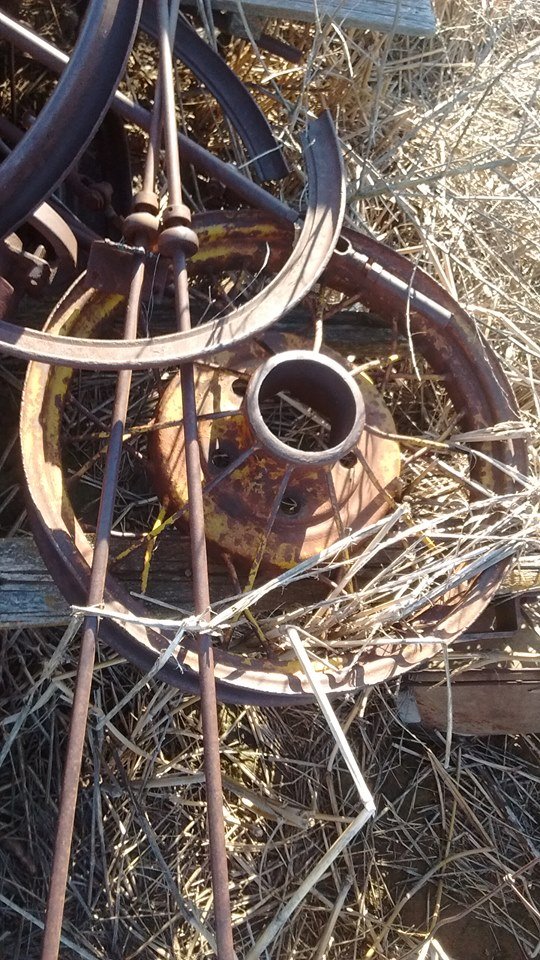 Thanks for all the comments and photos, those wheel photos were great! So you know, I am in SW Kansas, basically half way between Dodge and LIberal in No man's land, not many Ts out here, a few As but the clubs are not active like they used to be. I am trying to plant milo so I may not check this for a while but I did get over in a "goodies" pile and found some items, some T parts and some Maxwell and some I don't know what. I don't think the rims I took pics of are Ford, maybe they go on those disc Maxwell wheels? I think the wood wheels are Ts, there is a pretty good pile of wire spoked wheels, I assumed they were Model A as there was a couple firewalls and frames that I know were but there was a set of wires with a smaller hub that I took a picture of, I am sure its not T but I thought I would post it. I am almost positive this fender is a T and later I found what I think is the mate, I don't know what year they would be but they are repairable. Thanks again everyone. I really appreciate your help, I farm and have another job so it is hard for me to go anyplace and look so the net is my best source. I ordered a Ford body parts book, a reprint, what other books are good for learning how to ID different years? Thanks