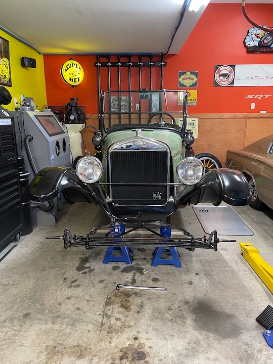 Took Rattles on a shake down run to settle in the front end. I also had a friend drive it who has been driving Model T's for a long time. He said that the bands feel good and the car feels great to drive. Now I have to measure the Toe and make an adjustment.