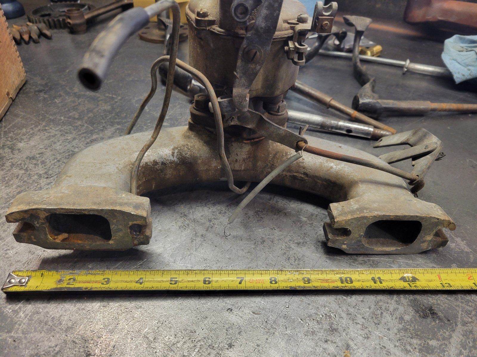 Anyone have any idea what this manifold was intended for when new. I don't believe Model A due to the port shape. I know what the carb is from, and dont know if that's a clue or not. My only guess is Iron Duke Chevrolet.