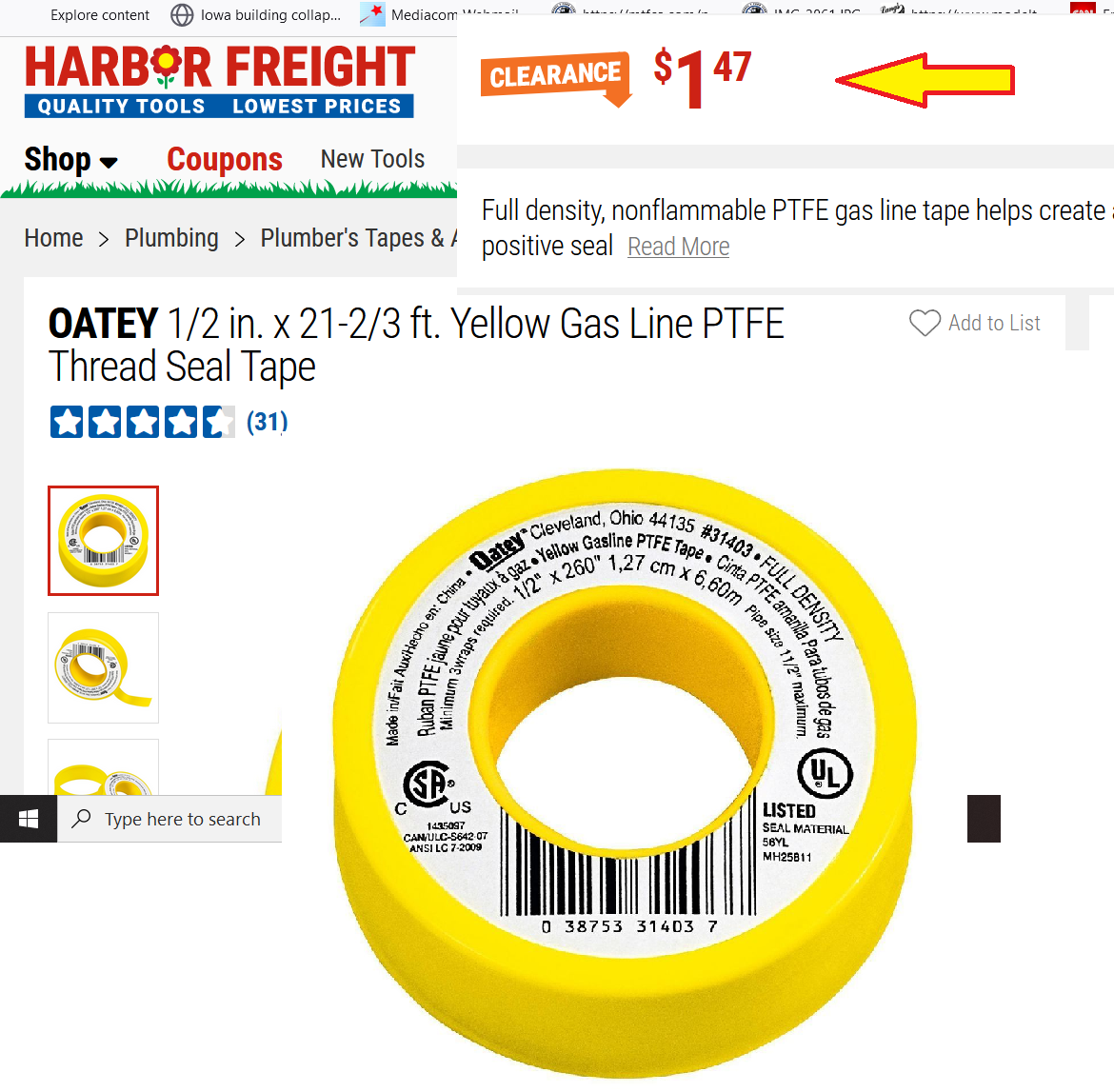 I agree that PTFE tape can be used for gasoline. BUT I don't trust the color of the tape to indicate its overall use (too much stuff made overseasMark Gregush wrote: ↑Wed Mar 20, 2024 10:55 am* Contains PTFE