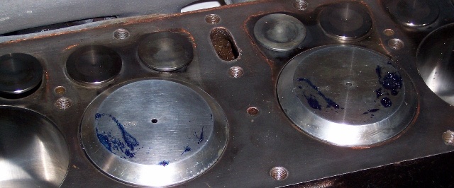 The "Z" fit didn't work as there were piston knocks after install (had not learned to fit with loose head bolts first). So took off the "Z" and painted the chambers with Prussian Blue paste. Fitted back with a few bolts and cranked over, that showed on the top of a couple of pistons where the piston hit the chamber dome.