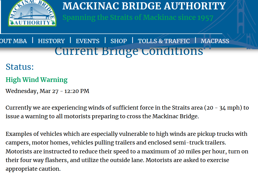I believe the Michigan Jamboree is going across it next year and they are running their tour out of St. Ignace. I plan to go. My wife is from Marquette, Queen City of the UP, and has walked the bridge on Labor Day since it opened. I have walked a few times, once everyone’s hair was standing up straight because of the wind. The grates let the wind out from under the deck to prevent harmonic rocking that would destroy the bridge. Look at a video of the Tacoma Narrows bridge in the 40’s.