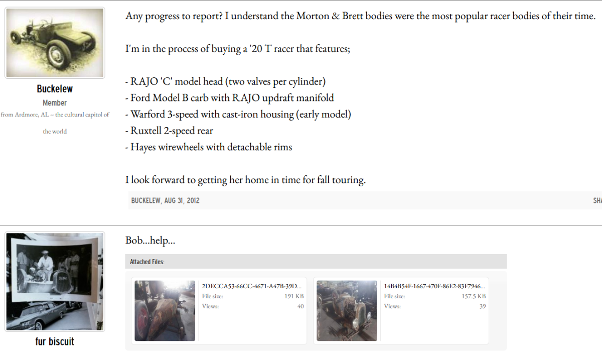 - * REQUIRED* Type and Year of Model Ts owned: 1915 Runabout 1913 Speedster