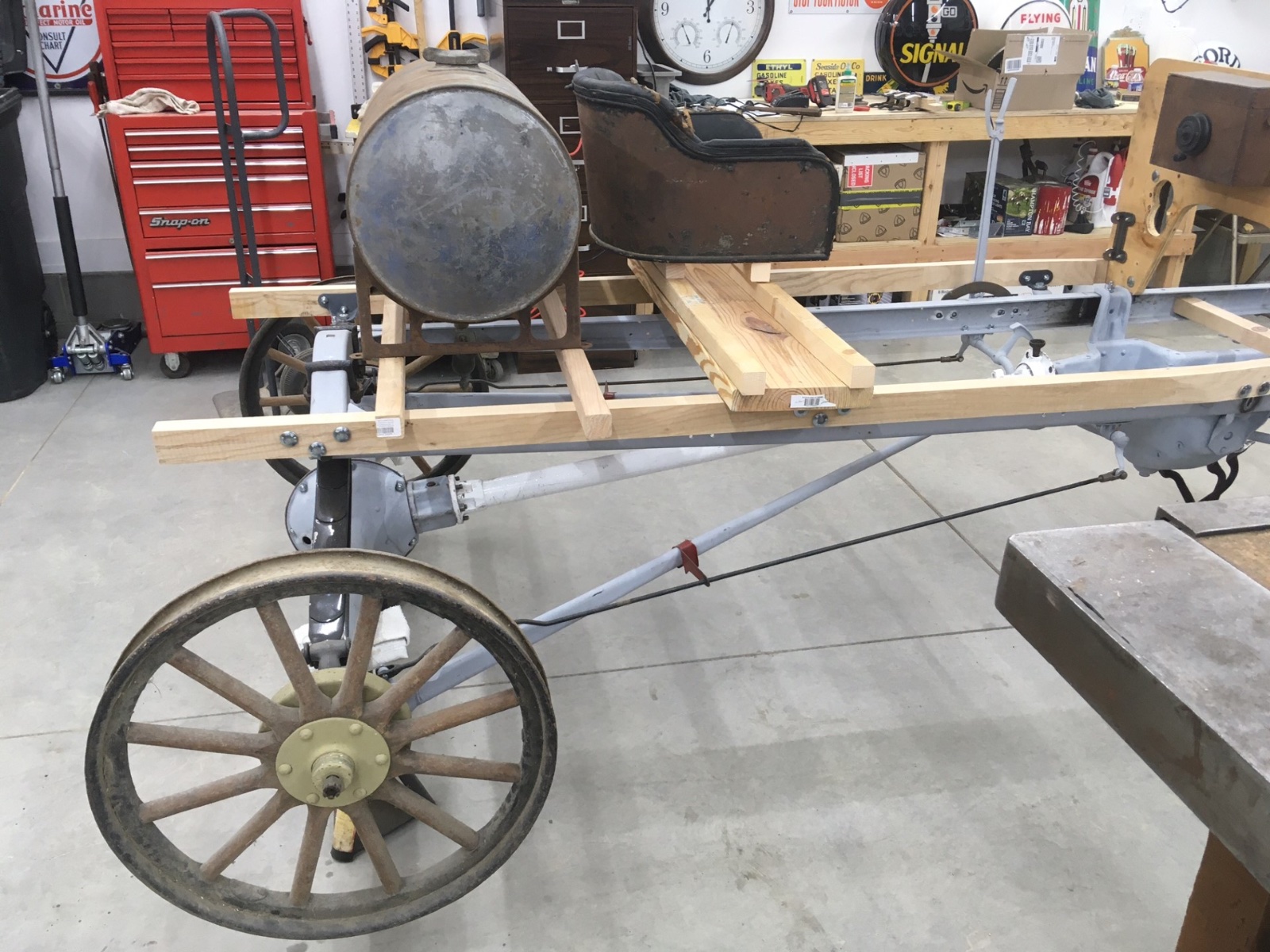 Well, I moved this to Ohio and have started to place some parts on the chassis to get a feel for what to do for a body. I like the basic feel of the spacing, but it needs a body platform of some type. Step in or step over. Flat dash or scuttle cowl. Tool box or ? on the tail end. Suggestions most welcome.