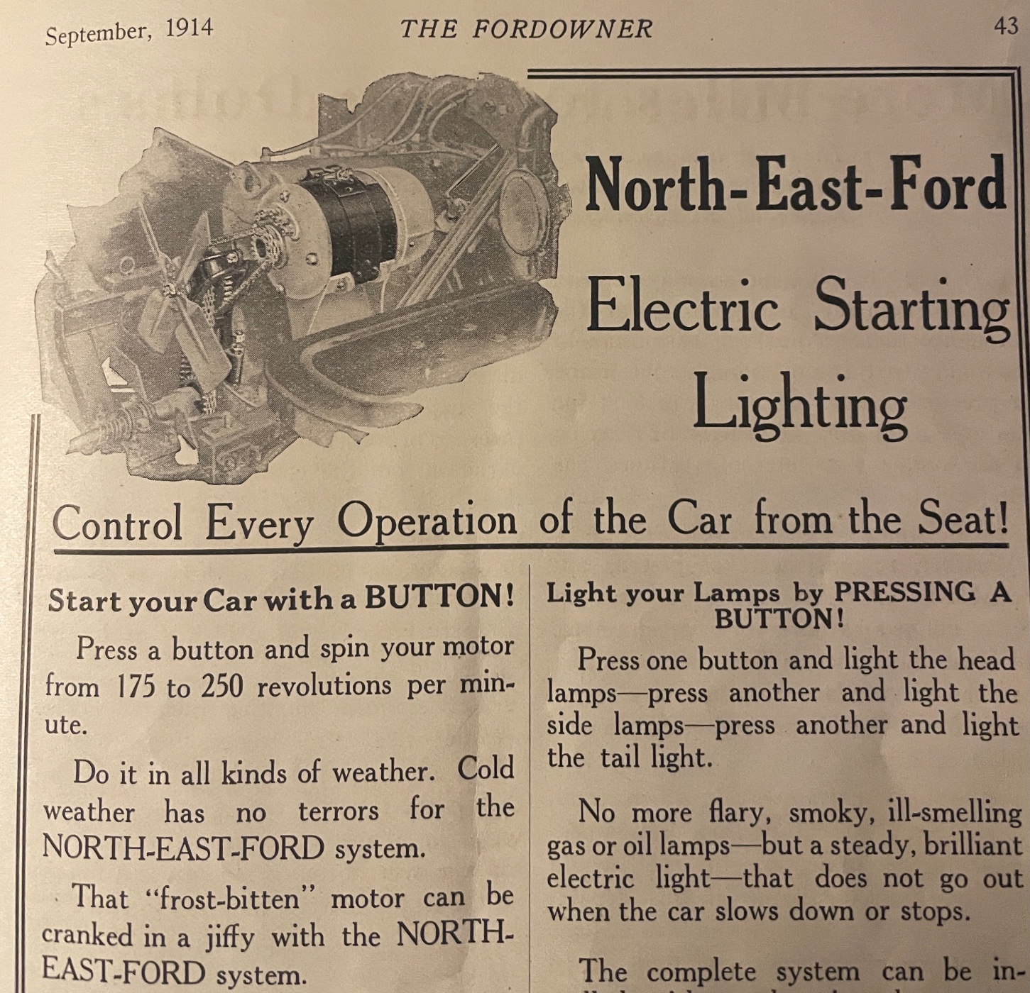 Eventually Ford came along with a “better idea” in 1919. After a few broken wrists, arms, wrenched backs, and forgetting NOT to over advance the spark the light bulb came on.