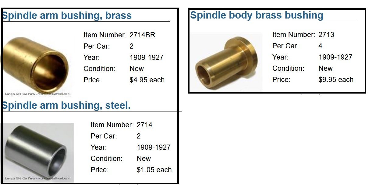 After installing, they will need to be reamed to fit. The face of the spindle bushing may need to be faced. If you don't have a copy, while you are placing the order, get the Model T Service (The black book) so you know what needs to be done.
