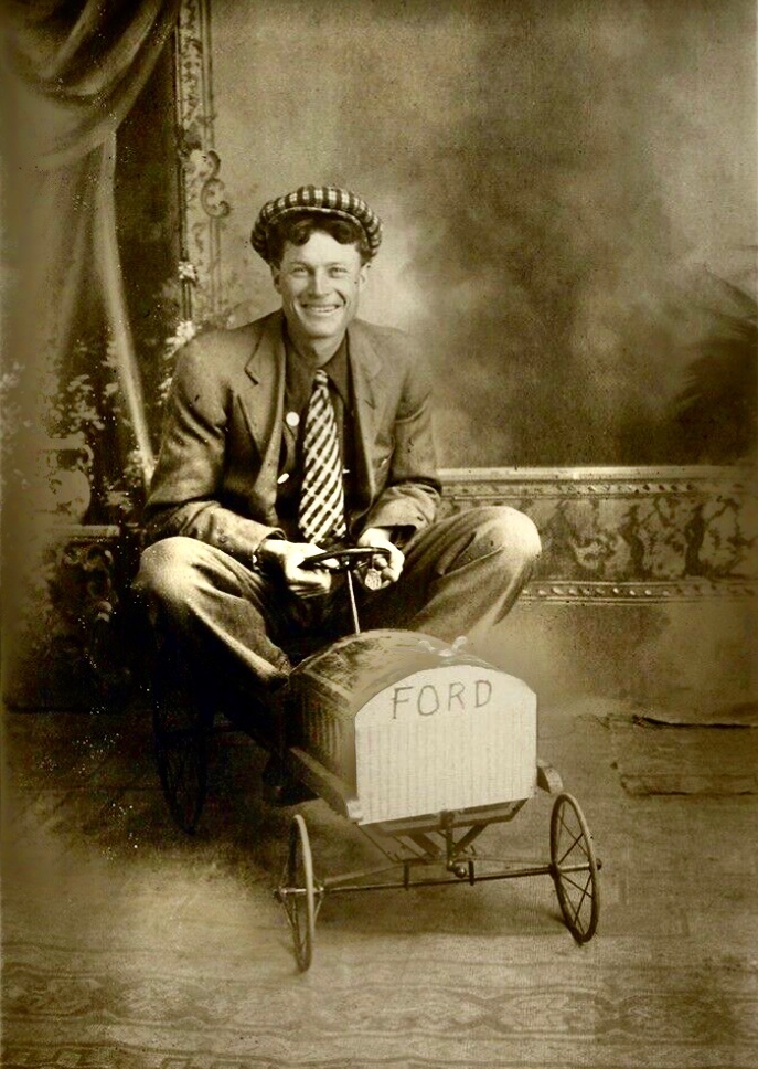 That first guy reminds me of Will Rogers. I’ll bet he enjoyed his life, was a pleasure to be around and was always the life of the party. Judging by the background, I believe that photo was taken in a photograph studio and the little car was for taking children’s photos, until this happy, mischievous guy came along… I’m surprised the car didn’t collapse as his feet are in the car and it is supporting his full weight.