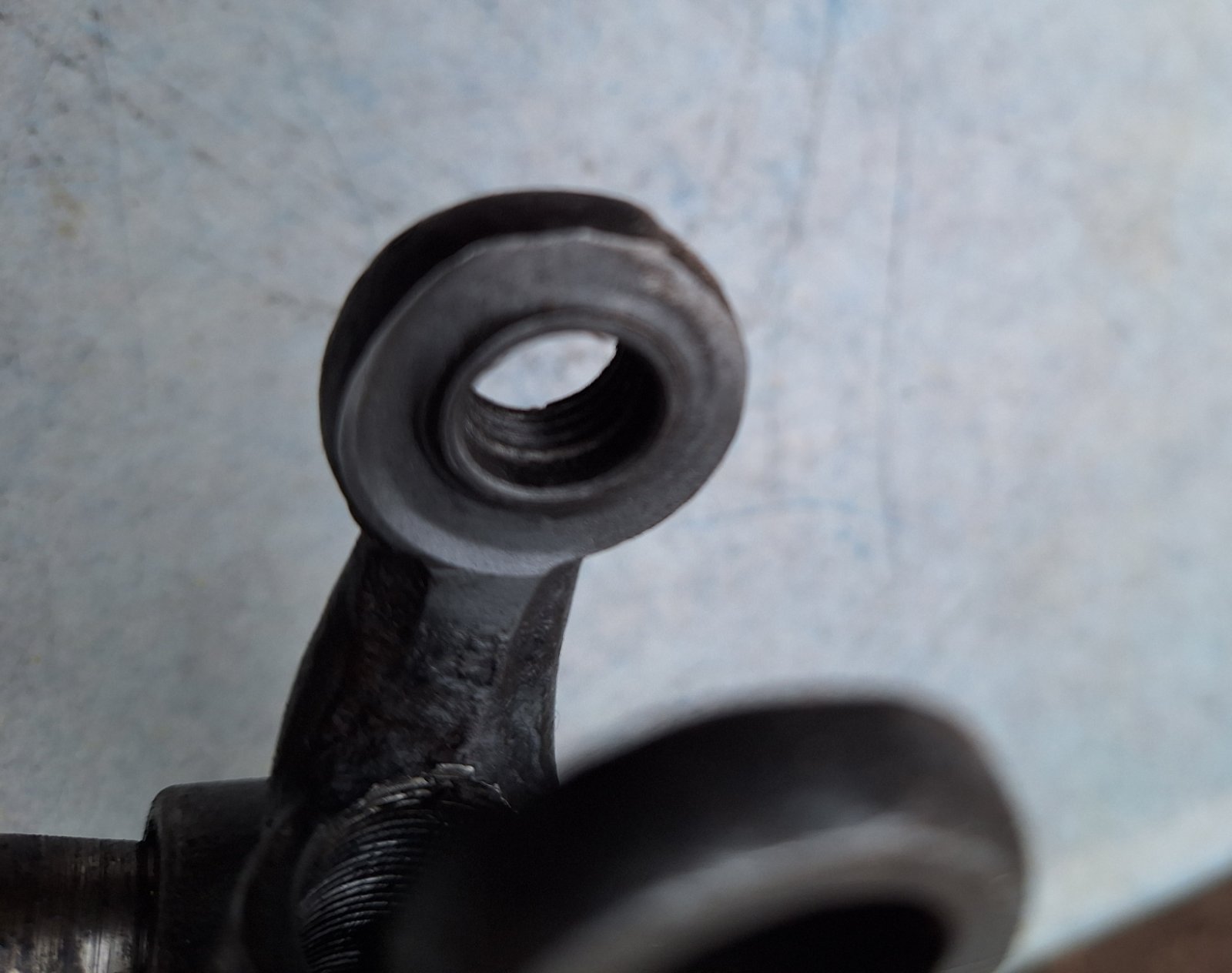 The spindle arm ends were severely worn down by the loose tie rod ends bouncing around on rough country roads, so replacements were found.