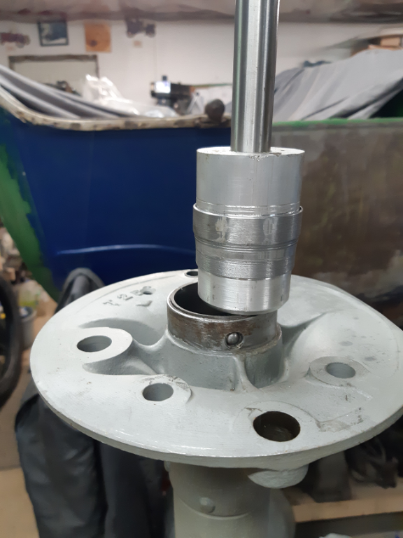 The spiggot I made to fit the bearing bore was of two diameters. To machine the mating surfaces between the castings,and dress the thrust faces, a smaller diameter passed through the centre so I could mount the castings mating flange outwards. Then the tool was reversed in the housings so I could true up the outside lands where the tubes riveted to the housings. Perhaps this was an un-intended master stroke, because when the tubes were bolted to the castings, all was in order as far as straightness goes.