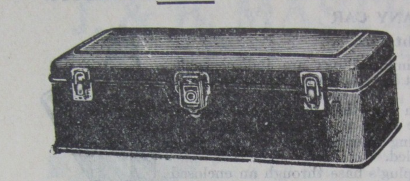 My box has a Perfection Lift Lock. Clasp. The box has a flat top. It also has a seperate compartment in the back. The shape is perfect to fit a Ford tire pump. I have never seen another with the separate compartment.