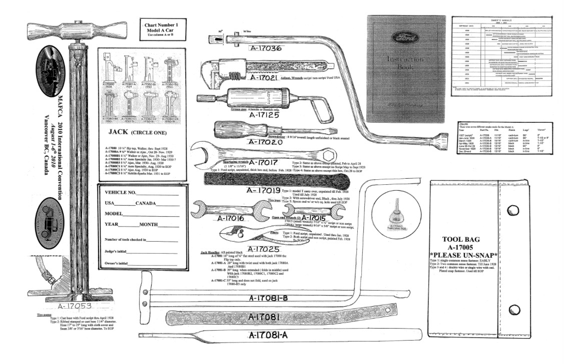 For the supplied car tools, Parts and Price list booklets for Model T picture those tools and most have the factory number embossed on the tool to to identify, generally if the tool is marked ‘Ford USA’ that is a Model A tool. Model A Club nat’l has nice guideline listing the car tools for the Model A.