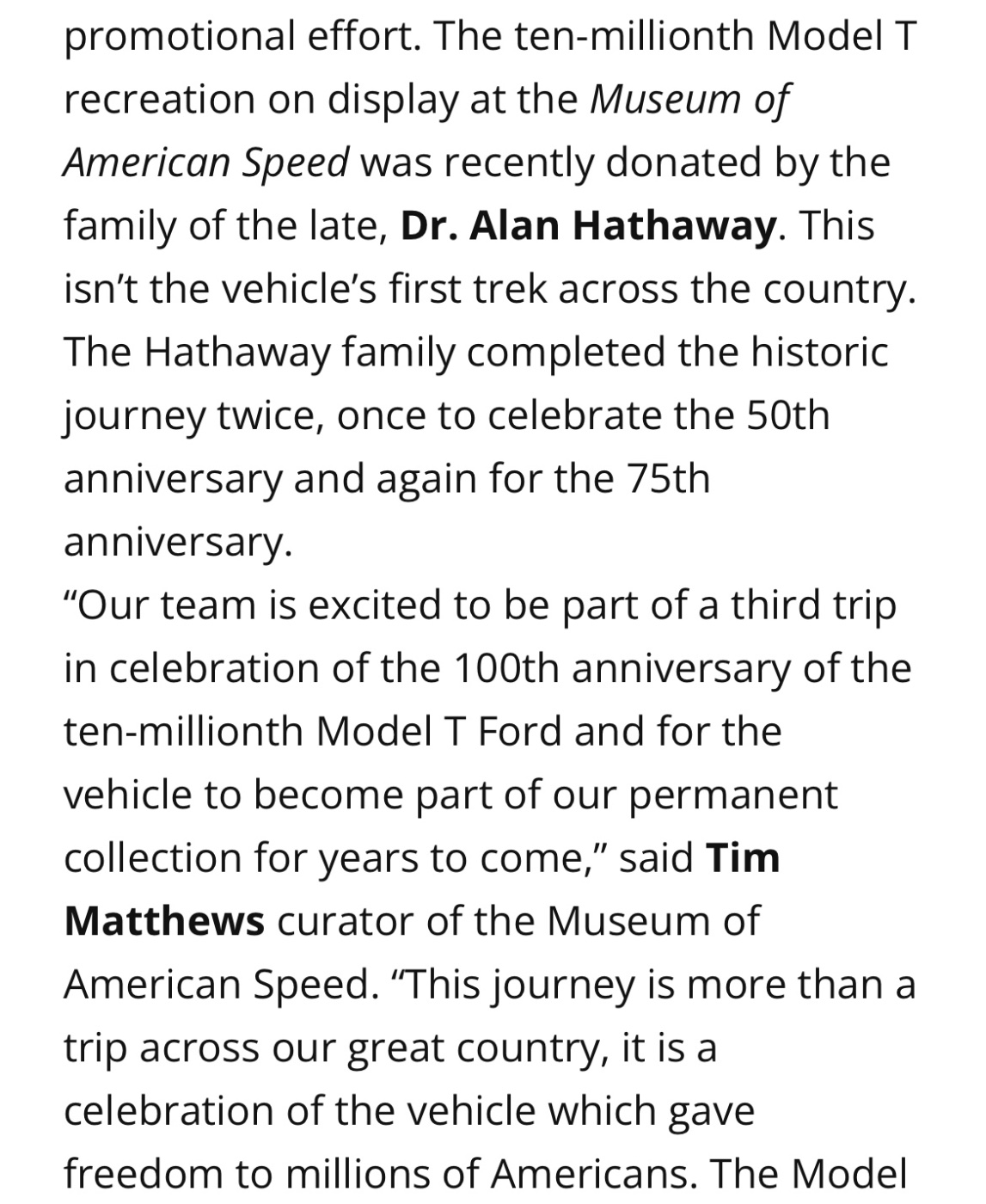 The Museum of American Speed announced today their plans to make a coast-to-coast trip from New York to San Francisco in a 1924 Model T Ford to celebrate the 100th anniversary of the ten-millionth Model T Ford.